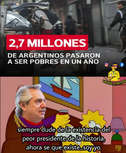 En Florencio Varela circuló un meme de dos paneles difundido por Varela Memes, que combinaba un gráfico sobre el aumento de la pobreza con una plantilla satírica de Los Simpson donde aparecía el expresidente Alberto Fernández.